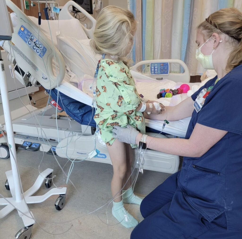 Today was a little bit better, and I’m just so proud of my sunshine girl! We played a little, and I even got to hear her giggle some. Music to my ears!! PT came and got Bex out of bed to walk some in the room. Later, we had her stand for a few minutes while we gave her a wipe down and cleaned her hair the best we could! She was pretty tired after all that and rested most of the afternoon. They were able to cut down on her pain meds. Her bowels still need to get going, but they are slowly moving. All baby steps forward today!