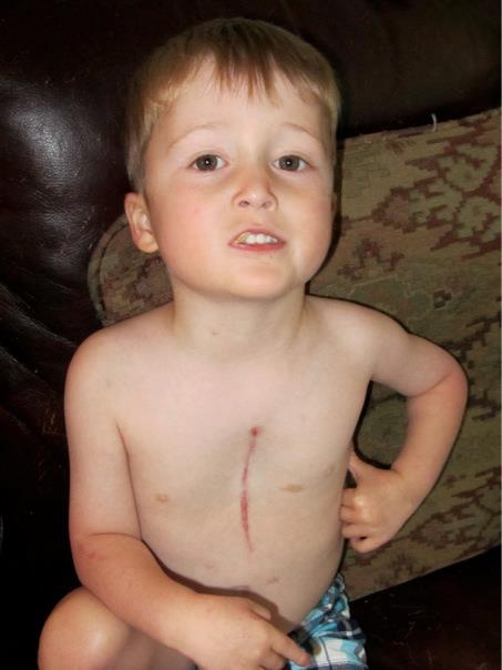 April 2012 – age 3 years 9 months – Collin underwent the Fontan Procedure. It is a complex, palliative heart surgery for children with single-ventricle defects, redirecting deoxygenated blood from the body directly to the lungs to bypass the heart, allowing the single working ventricle to pump only oxygenated blood to the body, improving oxygen levels and reducing heart strain. Collin was in the hospital for 2 weeks after his Fontan Procedure.