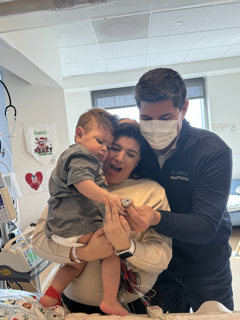 In February not much had changed to Alessandros care. Adjustsment were made to his Berlin Heart machine, those changes helped him as he has contiuned to grow and be even more mobile. Alessandro has been taking steps assisted either by one of our many therapist or by mom/dad.