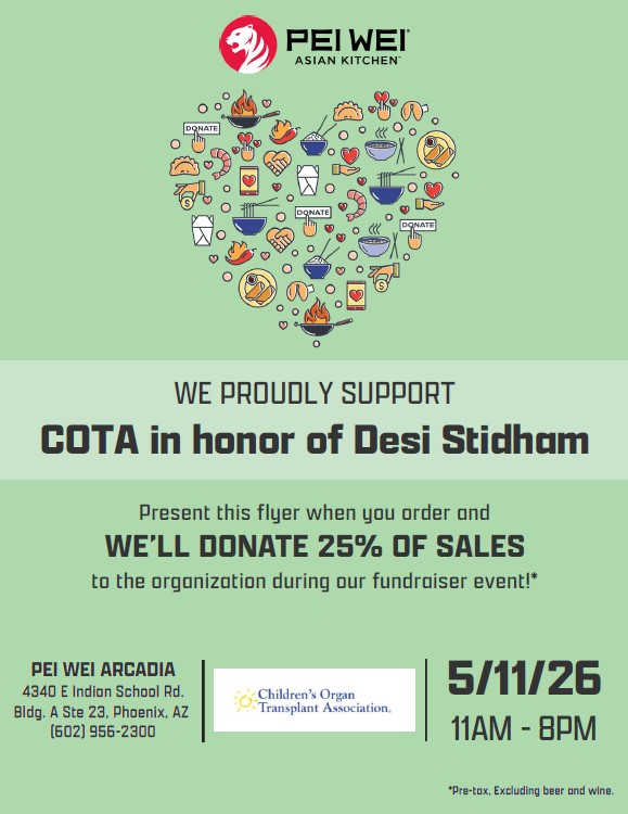 Fundraiser at Pei Wei in Arcadia – Monday, May 11th – Benefiting COTA for Desi!