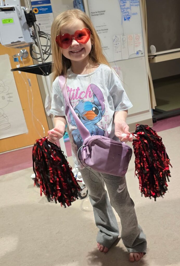 The other day, Evelyn and I were sitting in the hallway visiting with another baby who had a heart transplant back in October. We were trying to get her to wave (she’s never done it before), and leave it to Evelyn — she got her to do it! The few nurses nearby cheered, and it was the sweetest thing. Those little moments mean everything in the hospital.