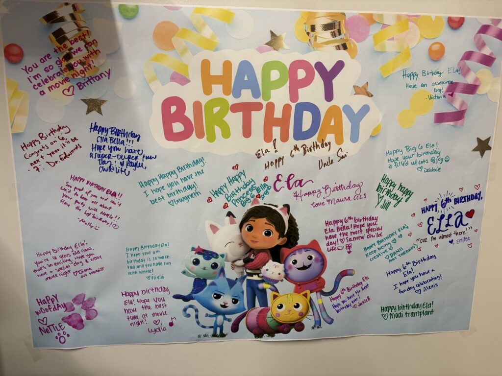 In other news, Ela is now a big 6 year old! Child Life helped us make her birthday as special as we could make it while being in the hospital. She’s also lost 2 teeth while being inpatient this time around. This makes her 3rd tooth in total being lost at the hospital (haha).
