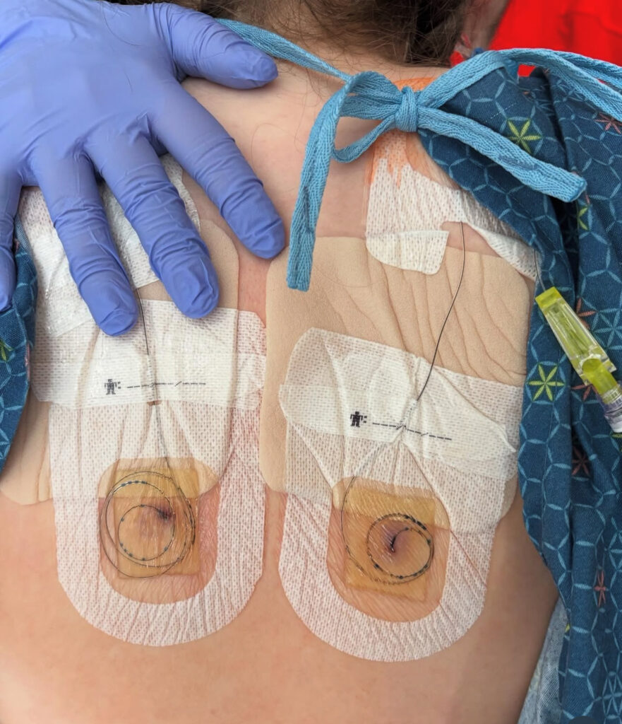 Not even 12 hours out of surgery and they want this girl moving. Physical therapy came in and helped her transition to a chair. It took 5 people to move the lines and get her into this position but the more she is able to move the better her recovery will be. 🤯 She will sit in the chair for a couple of hours and then they will help her transition back to her bed. I seriously don’t think I could handle everything she has gone through and continues to go through with the amount of positivity and grace she carries šŸ„¹ā¤ļøGillian you are my hero and I am in awe of your strength and your determination. My beautiful girl, you mean everything to me ā¤ļø The last pic is the pain catheters they placed in her back during surgery.Ā