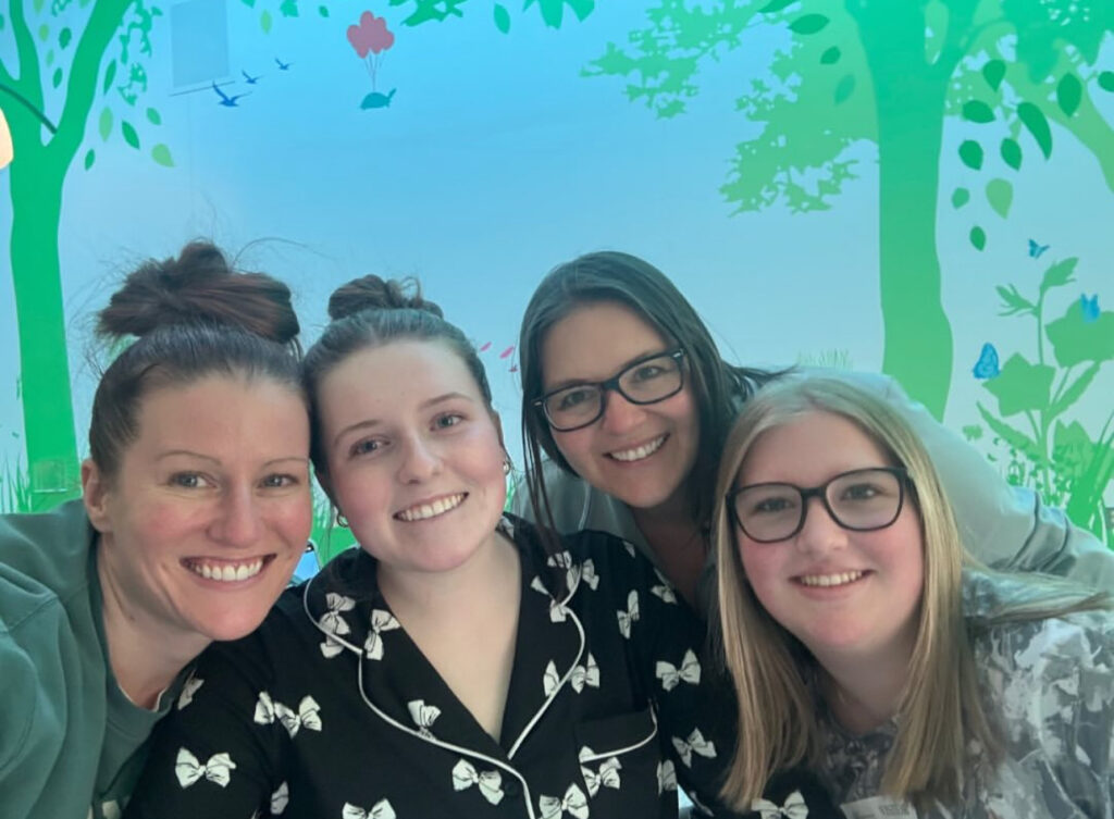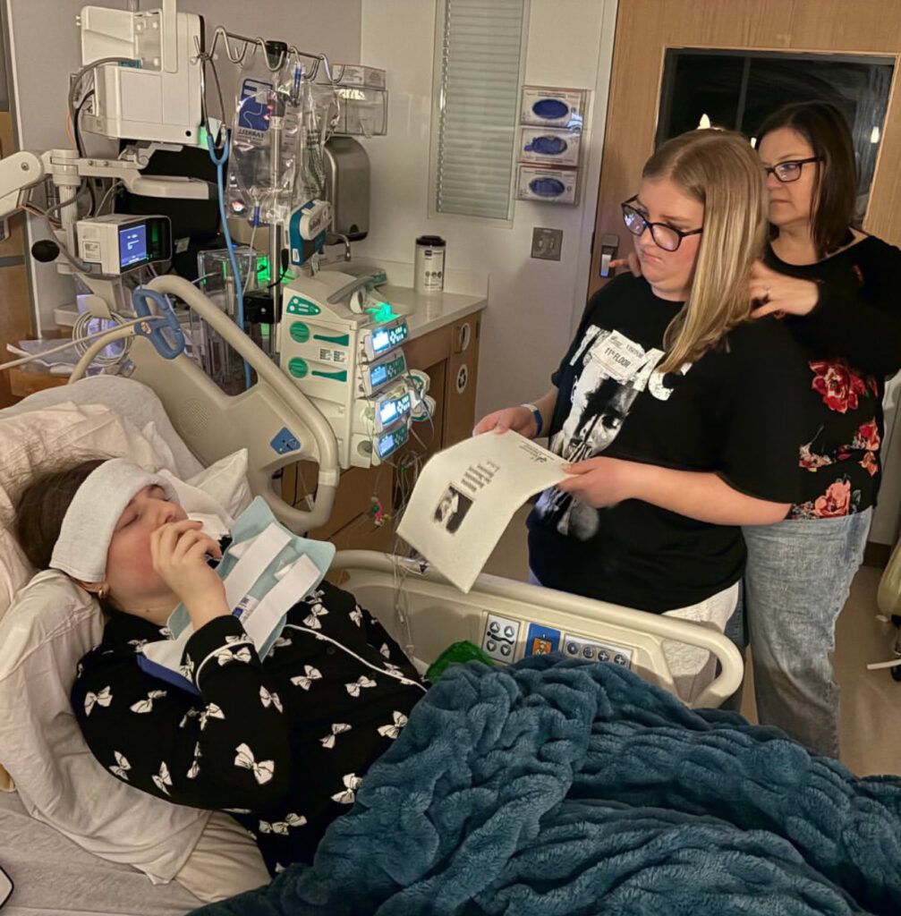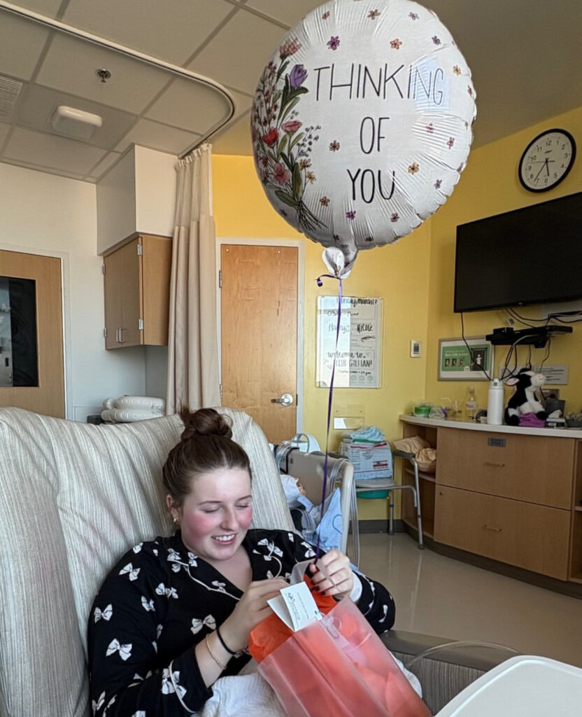 Gillian’s severe nausea turned to vomiting most of the night, they did a CT to make sure they didn’t miss anything on the ultrasound or x-ray. Everything looked ok on the CT, Her abdomen has been distended and her stomach couldn’t keep up with the Ensure shake she tried to drink. She woke up feeling a little better and was able to eat a few bites of food today. Physical Therapy came and she worked on balance today, she really is moving around really well. She has incredible nurses and we love them dearly!! She asked to be taken off the pain pump so she could move more freely and get out of the GI unit. They disconnected her from her IV and we walked outside for the first time since 3/3/25. It was a beautiful sunny afternoon. Love you all so much!