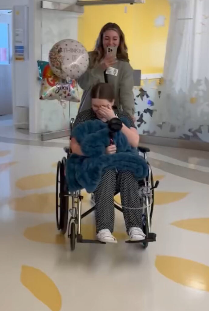 An early birthday surprise for Gillian! Haylee (cousin) flew in from Texas to give some extra love for her birthday weekend. Gillian will be 18 in a few short hours. She has been working and pushing to be out of the hospital by her birthday, and she did it!! She was officially discharged late this afternoon and we will be at the Ronald McDonald House for the next little while. Follow up appointments next week but this girl is killing it!!! 💗💜 Her nurses lined the hall to sing her Happy Birthday and celebrate her hard work. Gillian you are an inspiration to so many and loved by all who know you, I am the luckiest mama alive 💜