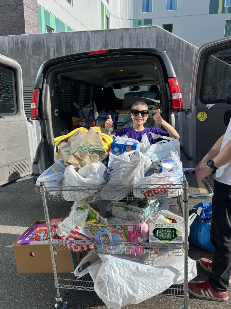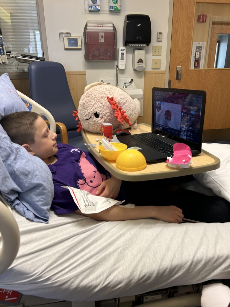 We enjoyed the hotel pool this morning and Jack drank his clear liquids while his dad and I scarfed down a quick breakfast. From there we headed to the Ronald McDonald House to drop off donations. It took 4 trips with large bins to bring it all inside. The volunteers were thrilled and very impressed with Jack’s efforts, so thank you to everyone who helped him bring in such a large donation. It was the bright spot he needed before checking into the hospital.