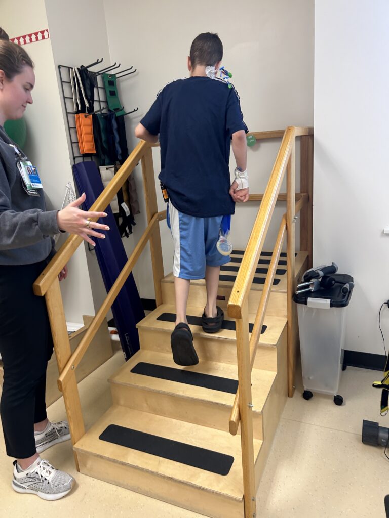 Jack started PT today that was more than just walking the halls. He did 10 minutes on the stationary bike, did some arm exercises and practiced stairs. He was a rockstar. Tomorrow we start back up with school work and tonight the siblings are visiting for the remainder of the week. We are both so excited.