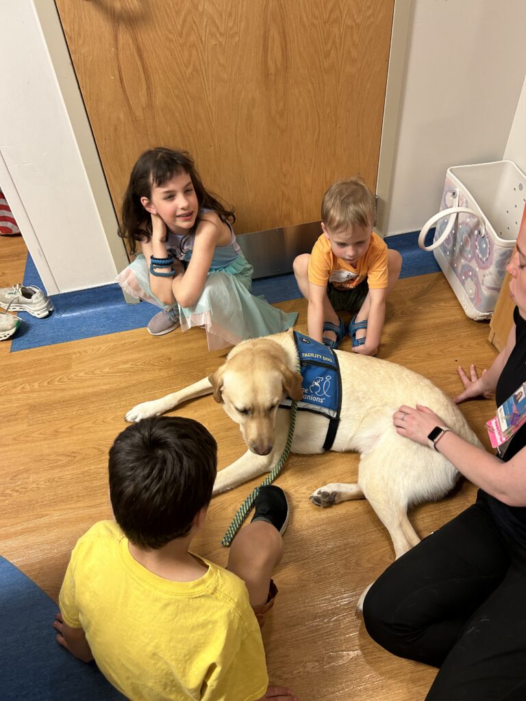 We got to visit with Grover the therapy dog today which was a nice treat. The kids met Grover over spring break when Jack got his CT scan and were excited to see him again.