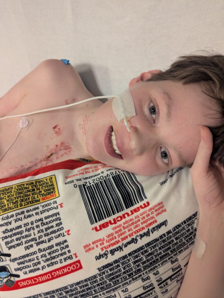 While he spent the afternoon tired and sore, we were already able to hear the difference in his voice. This procedure was an important next step. Now that his vocal cords are closing, we are looking forward to a swallow study scheduled in the next few days. We are so hopeful that this study will show the improvement needed to finally get him some real food. After eight weeks, we will all be celebrating!