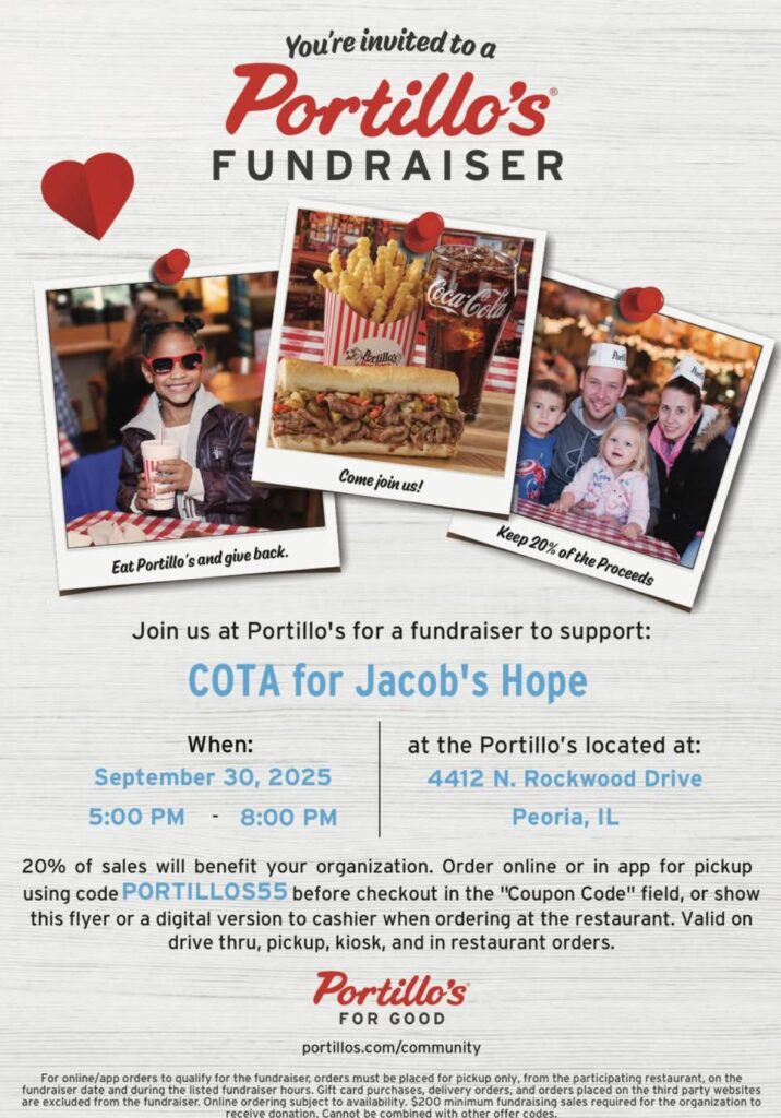 Great food for a Great cause! On September 30, we joined together at Portillo’s in Peoria!!!!!!!