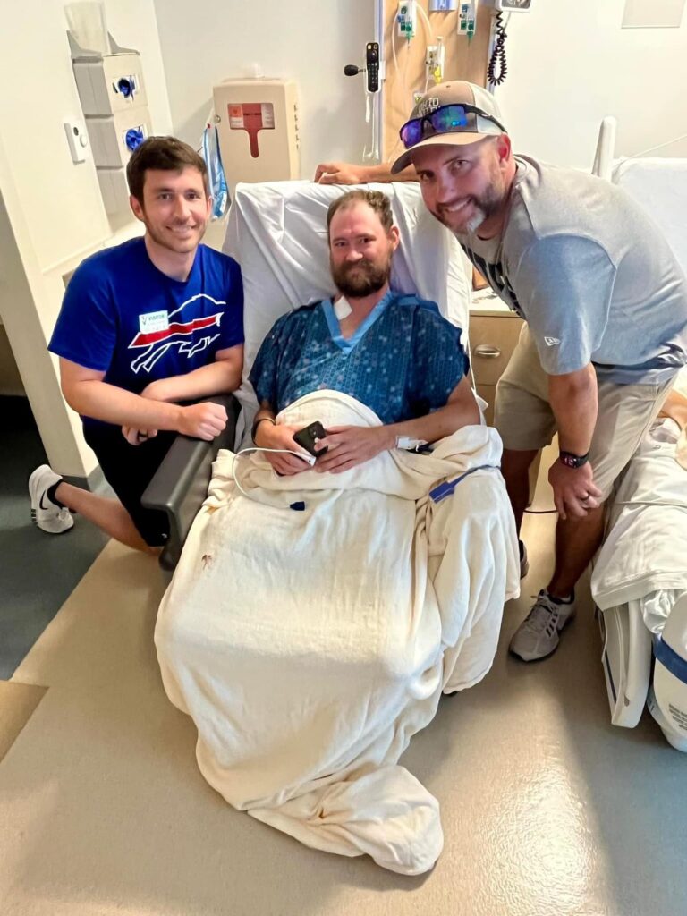 Jesse’s friends Jarred and Rocky came to visit today. Jesse was beaming with pride that his friends took the time to come down to see him. In addition, Greg visited again today! Jesse has so enjoyed the company he’s received this weekend.