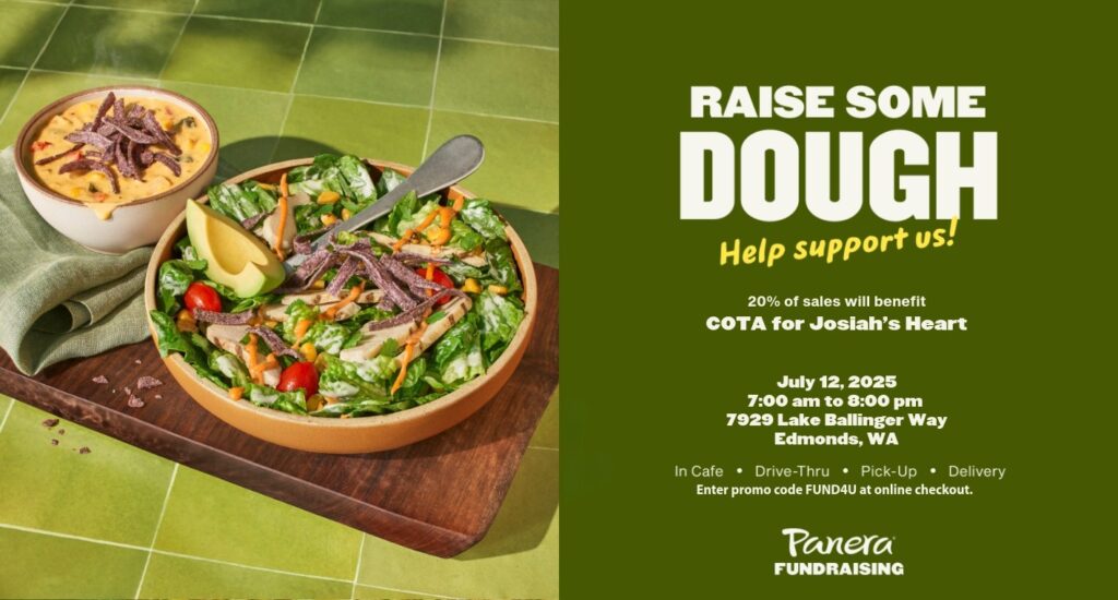 On Saturday, July 12, 2025, Panera is donating 20% of sales to COTA for Josiah’s Heart to help with transplant-related expenses in honor of Josiah, a brave 20-year-old fighting for a new heart.