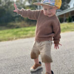 Mac finally got enough healing to get a second opinion. A lifeline doctor at another institution that was 4 hours away saw the G-tube as a blockage to his digestion and removed it. We spent a month at this hospital, 4 hours away from us, in our hopes and theirs to get Mac to eat. He did for a while, but his stomach motility had to recover, so back an NG tube went. For months he was battling again. There were many days I pushed Mac around a cozy coupe in our living room/kitchen so he wouldn’t throw up or writhe in pain from the motility medications and formula. That was until ultimately we parted ways from them both and started blending his food under nutritionist guidance and stopped the meds to see if he’d be in less pain and regain stomach motility. After a week, he was happier, digesting food, pooping again and able to not throw up as much. This time was very isolating for us, but we grew closer as a family. There were a lot of reading books, creek visits and sitting with our farm animals observing and playing and just being content with a toddler not screaming and maintaining. Finally, insurance gave the green light for a new G-tube placement, and in May 2023, Mac got his new G-tube at 17 lbs, and 2 years old. He started growing again and started to try to walk assisted with push toys.