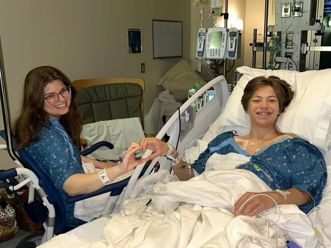 Siblings Shayli Daves, 23, left, and Shafer Daves, 15, pose at Monroe Carell Jr. Children’s Hospital at Vanderbilt hours after surgeries where Shayli donated a kidney to her brother, who was born with rare, life-threatening Denys-Drash Syndrome, which attacks kidneys of its hosts