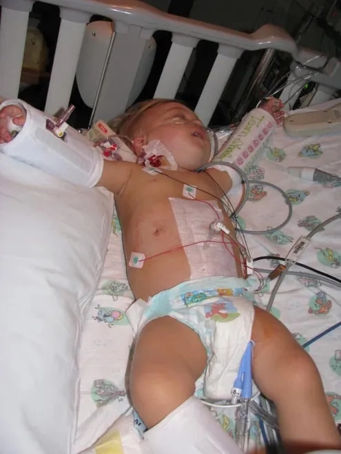 A 20-month-old Shafer Daves in 2011 hours after receiving a living kidney donation from his mom, Jada Daves, at Monroe Carell Jr. Children’s Hospital at Vanderbilt