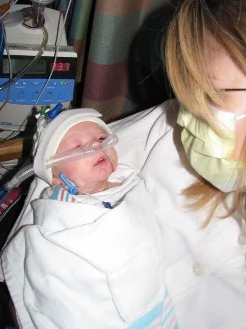A 2009 picture of Jada Daves holding her 10-day old baby, Shafer, in the intensive care unit at Children’s Hospital at Erlanger in Chattanooga, Tenn. Doctors told the baby’s parents that the baby likely would die within hours from complications from a rare sydrome called Denys-Drash