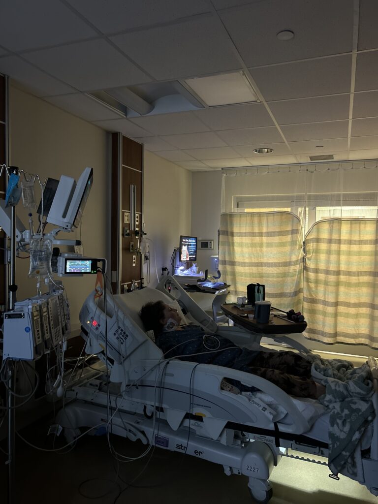 Then, after 4-5 days (it’s a blur), at 12:30am, we were woken up and told she was being moved out of ICU and back to step-down. Unbeknownst to us until we arrived to her new room, she had been placed in a double room. I quickly realized I would not be able to stay. While I got Kya settled in, Eric worked to find me a hotel room so I wouldn’t have to sleep in a hospital lobby. I even briefly considered sleeping in my car, but even my stubbornness has temperature limits.   I may not have slept in the lobby (or in my car), but I did have a good cry in both before I pulled myself back together. I was exhausted. Getting a hotel room was probably the best thing that could have happened at that point (finally, uninterrupted sleep), but I couldn’t fully appreciate it until at last I crawled into my bed at 2am.