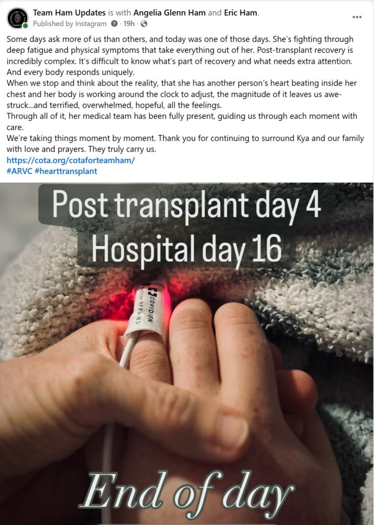 Our best looks different every day and she is giving everything she has. We’re hopeful for a turnaround soon, and expect to remain in the ICU as she works through this part of the course.