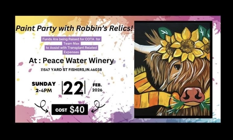 Come join Robbin’s Relics for a great night of painting/sip with friends for a great cause. The Children’s Organ Transplant Association (COTA) helps children and young adults who need a life-saving transplant by providing fundraising assistance and family support.