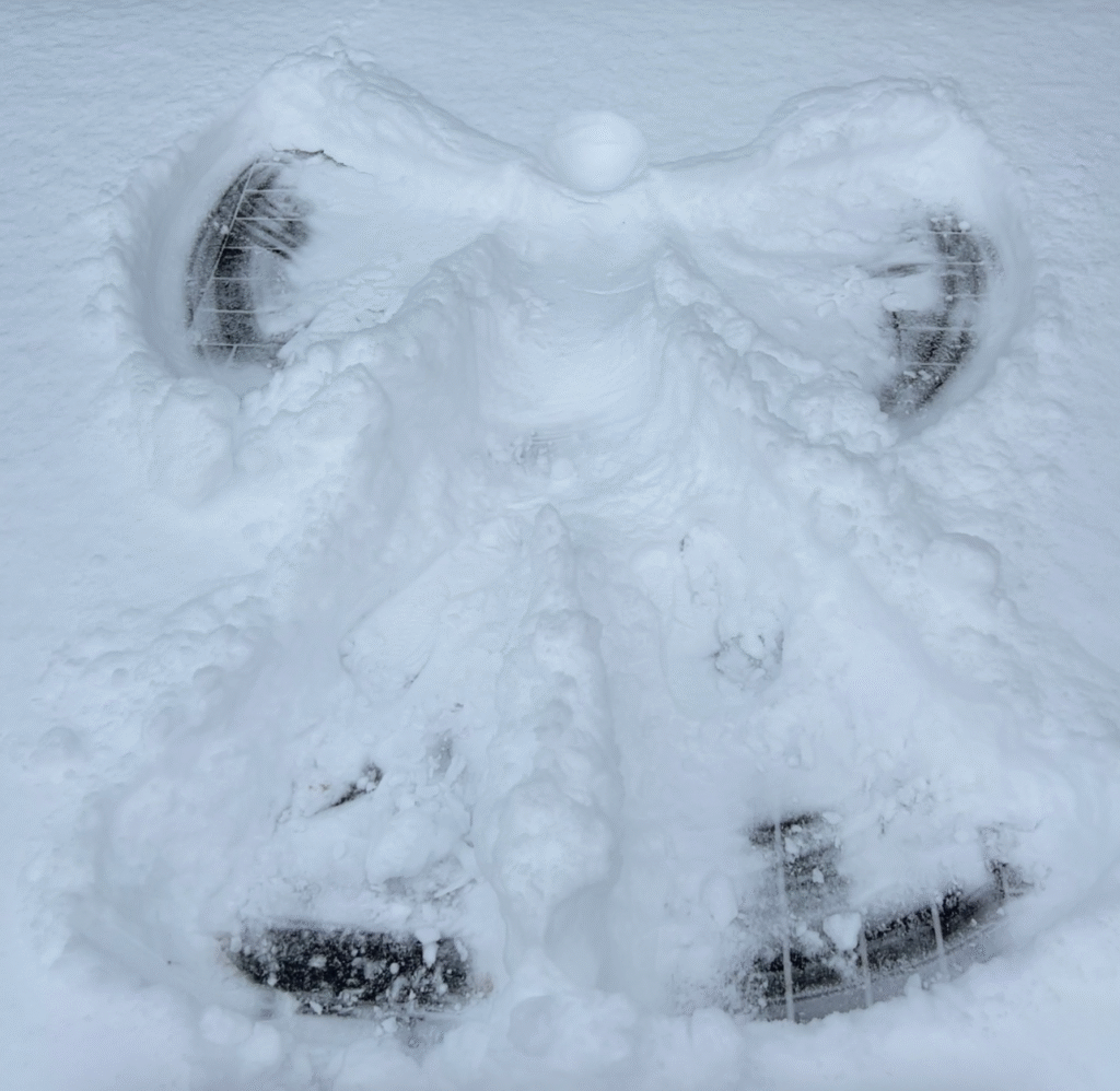 Grinning ear to ear, Trinity took to the freshly fallen snow where she left her imprint. Truly, angels are all around us!